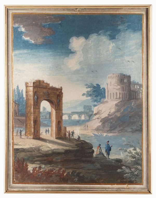Paesaggio con ruderi Paesaggio con castello e personaggi
