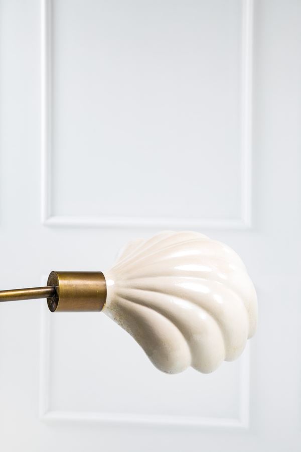 Ottone, ceramica smaltata bianca a guisa di conchiglia.