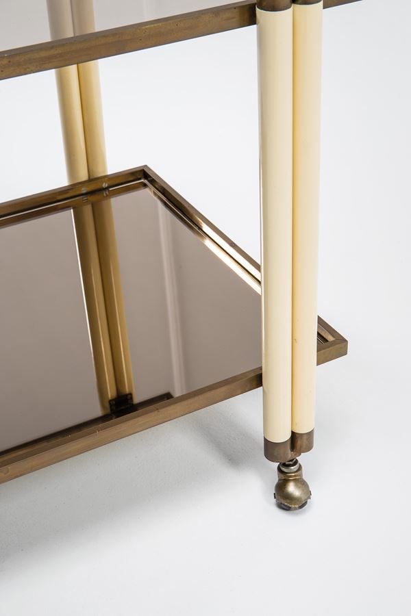 Ottone, resina plastica ad imitazione dell'avorio, vetro fumé, vetro specchiato.