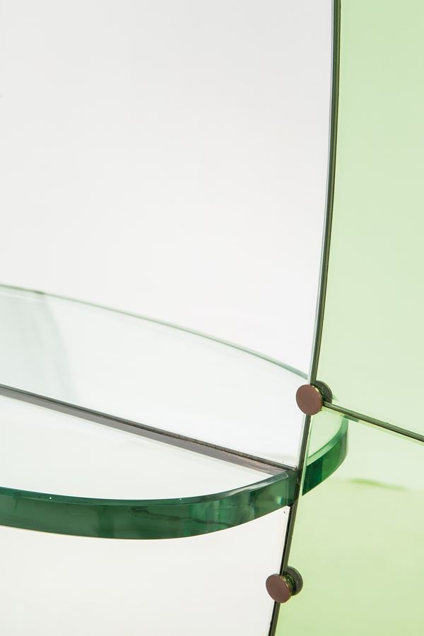 Vetro colorato, cristallo, vetro specchiato, ottone.