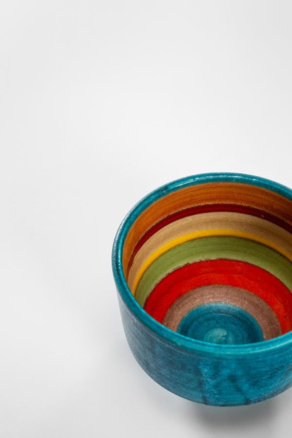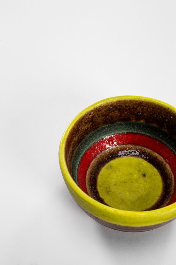 Ceramica smaltata a fasce policrome.