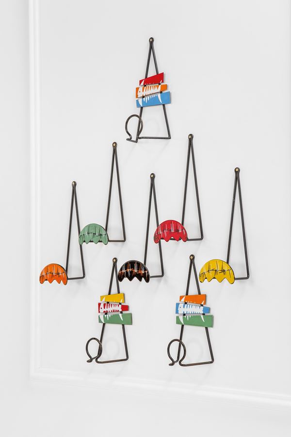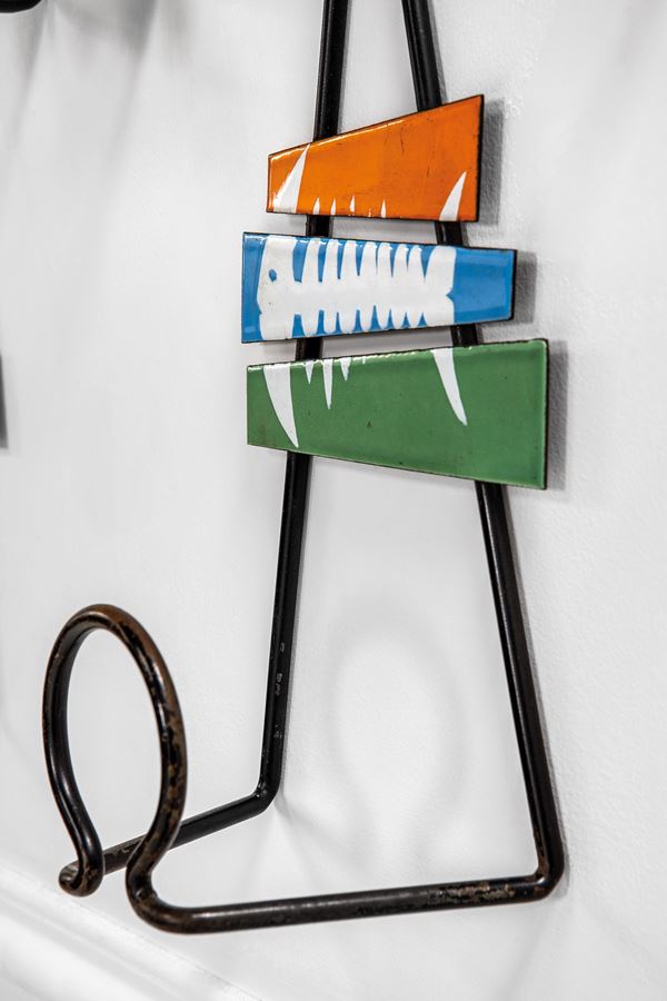 Gruppo di tre oggetti: specchiera, portaombrelli, appendiabiti da parete
