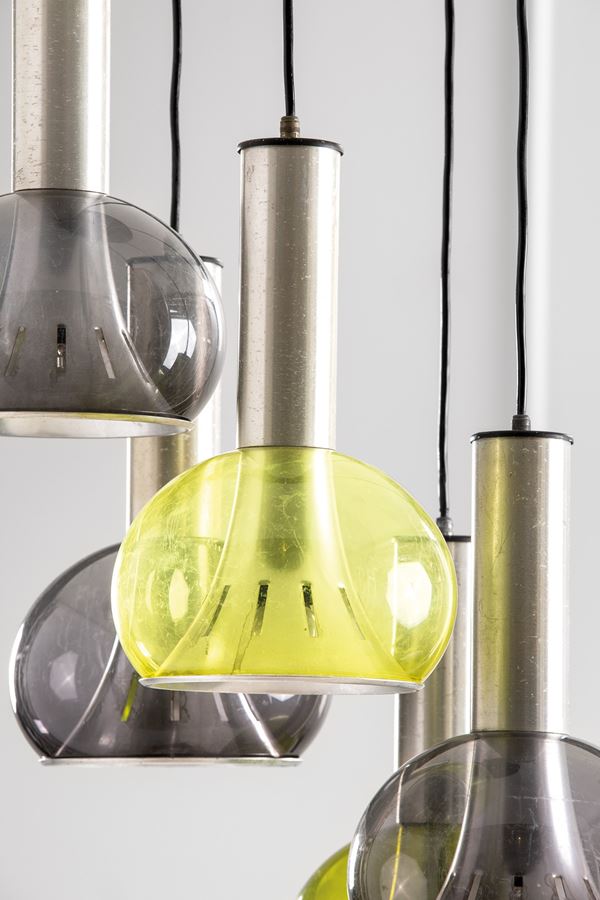 Metallo cromato, metallo verniciato, metacrilato colorato.