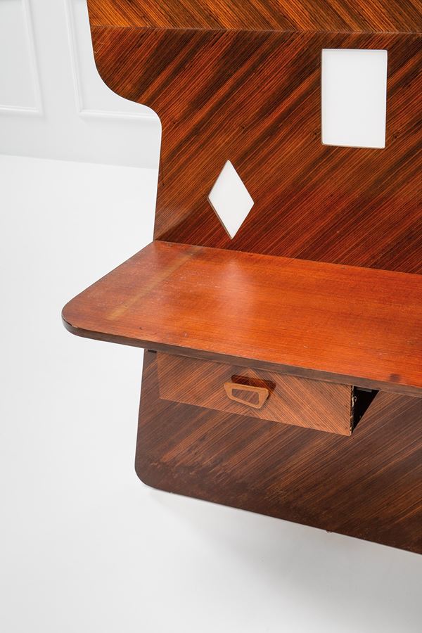 Composto da due paretine asimmetriche e piccola console con cassetto.