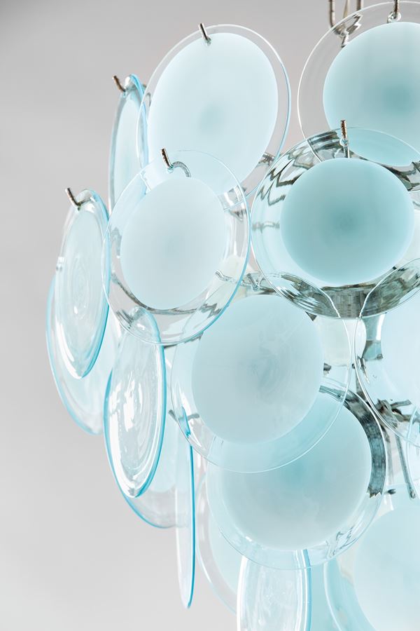 Elementi in vetro azzurro con inclusione di vetro opalino.
