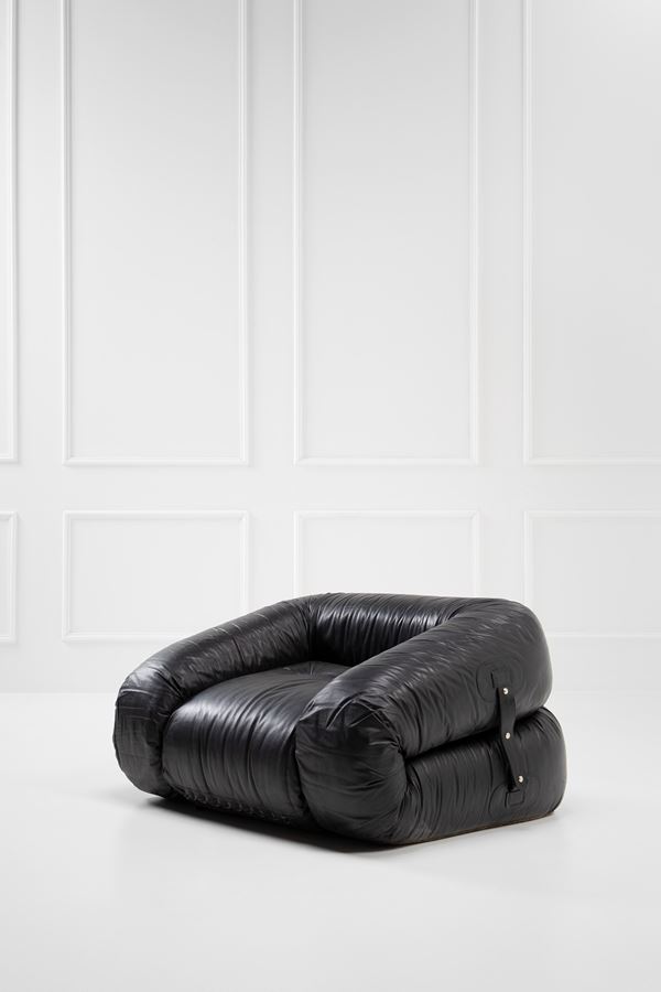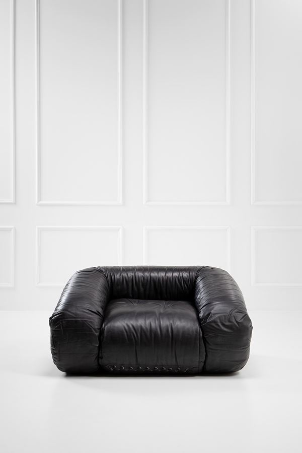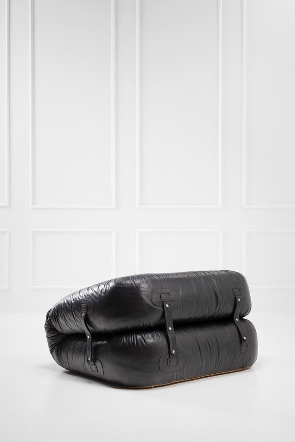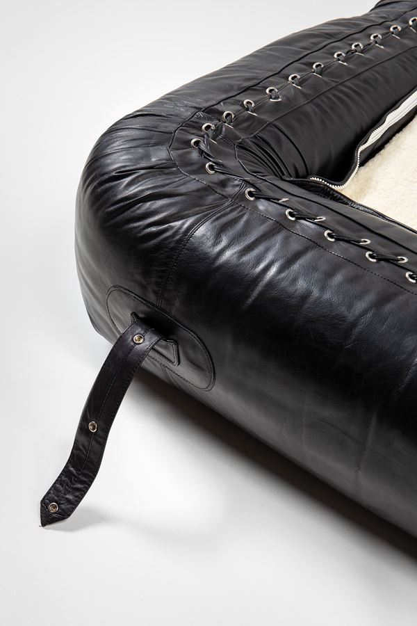 Espanso indeformabile, pelle, metallo cromato, interno in vello sintetico.