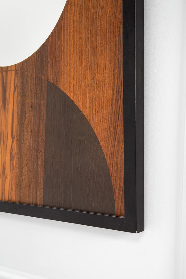 Legno laccato, legno impiallacciato in varie essenze, vetro specchiato.
