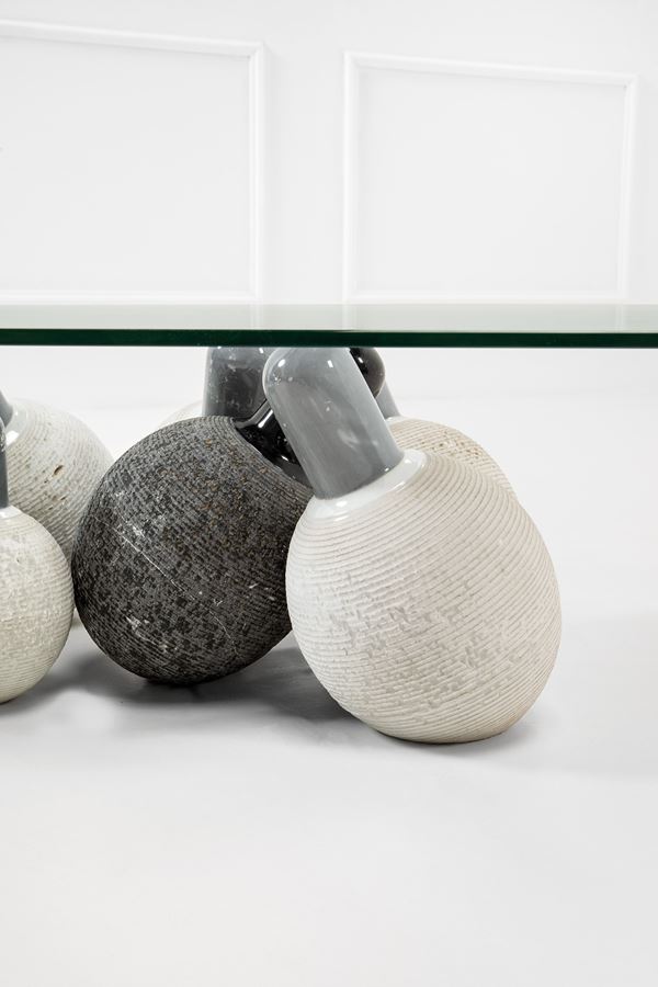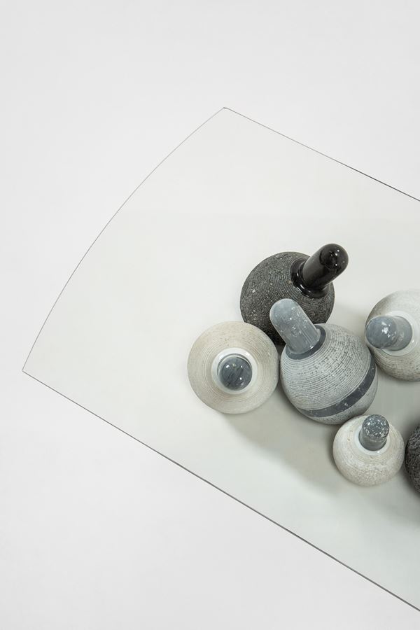 Marmo bianco, bardiglio imperiale, nero Marquina, cristallo molato.