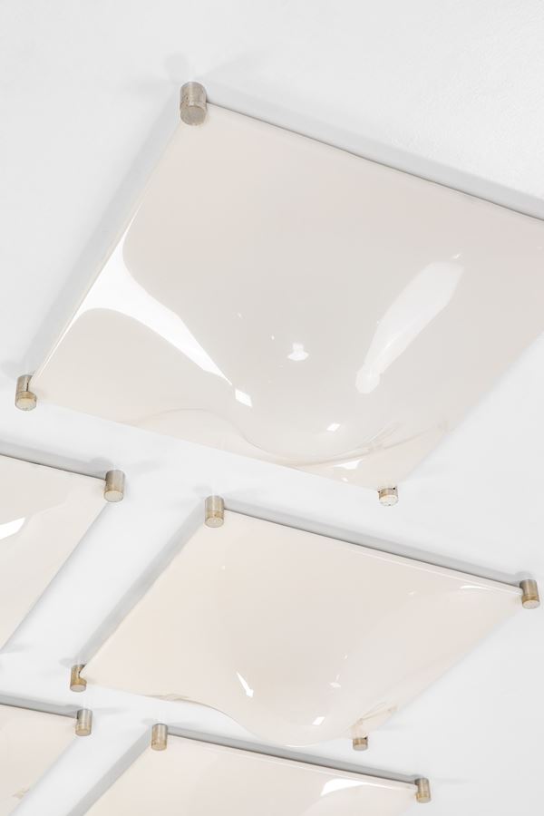 Alluminio anodizzato, metacrilato opalino sagomato.