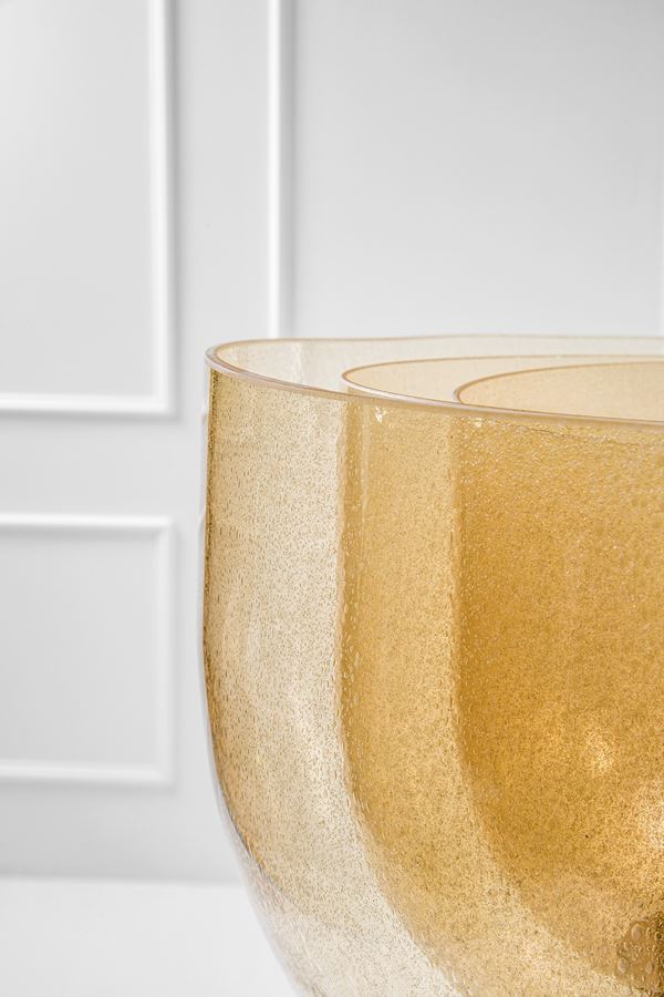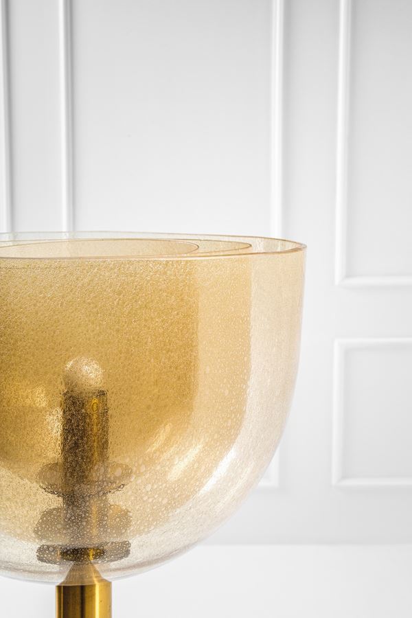 Ottone dorato, vetro soffiato colorato con inclusione di bollicine.