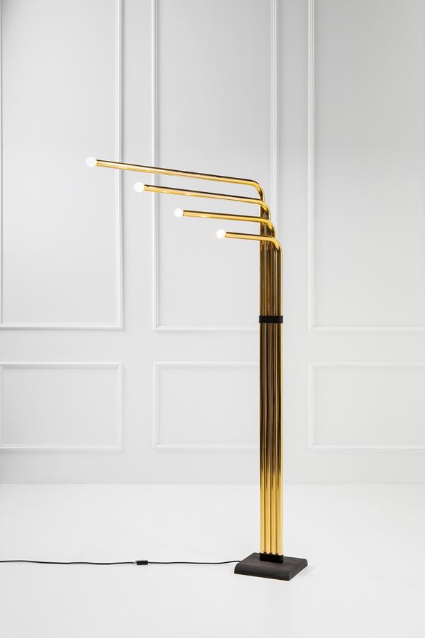 Metallo ottonato, fusione in metallo con vernice raggrinzante.