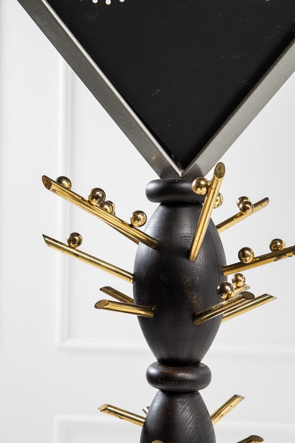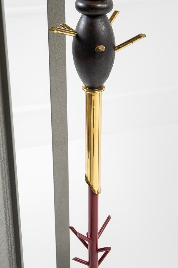 Metallo verniciato, ottone, legno tinto.