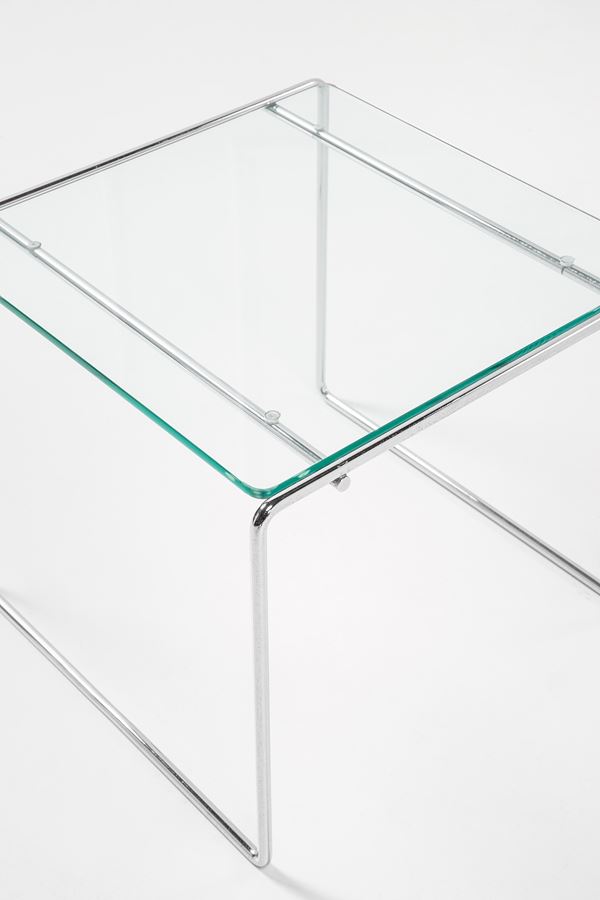 Tondino d'acciaio trafilato e cromato, cristallo trasparente.