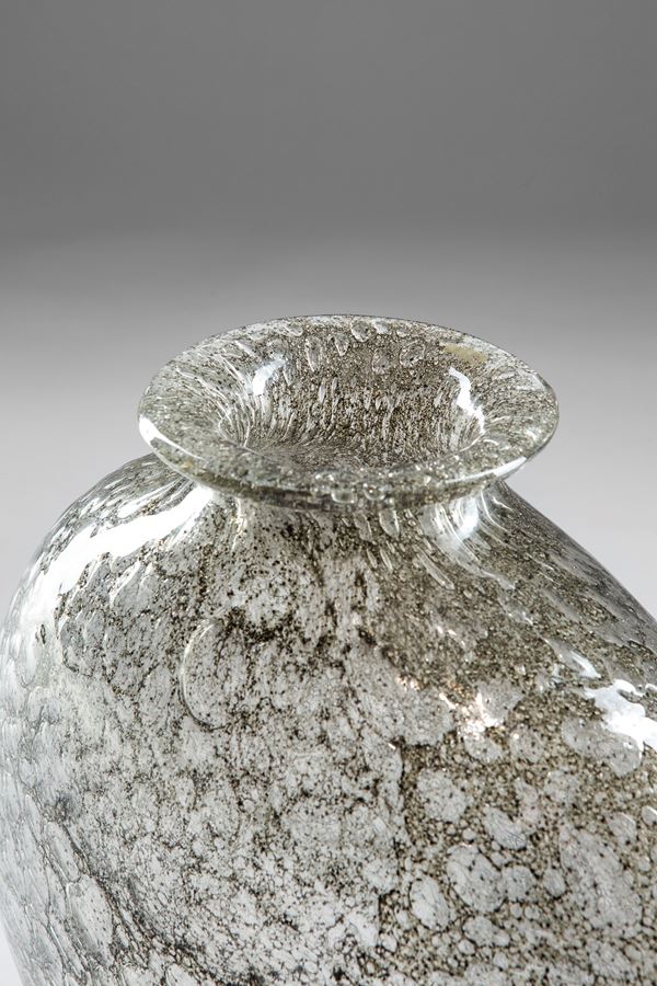 Vetro soffiato grigio con colorazione ottenuta a caldo senza fusione.