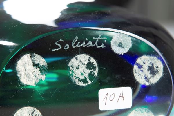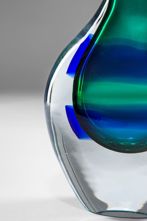Vetro sommerso cristallo con fasce blu orizzontali.