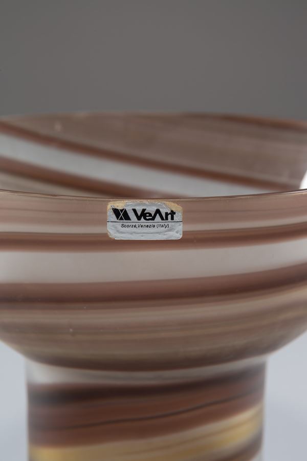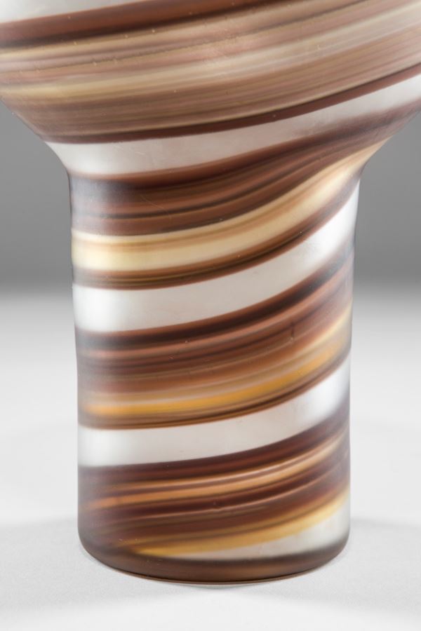 Vetro soffiato con fasce orizzontali disposte a spirale.