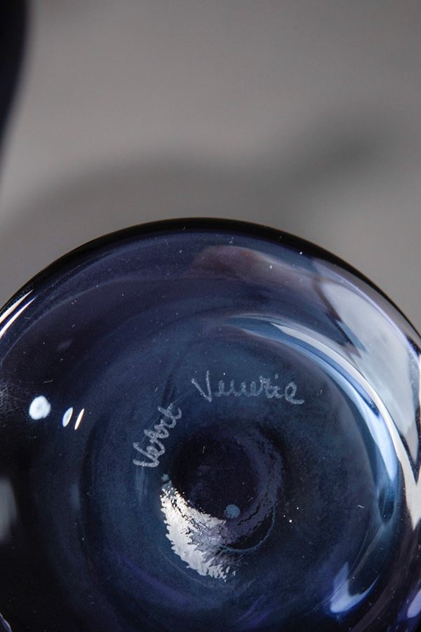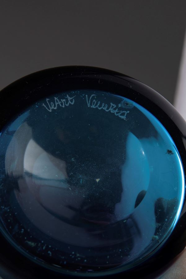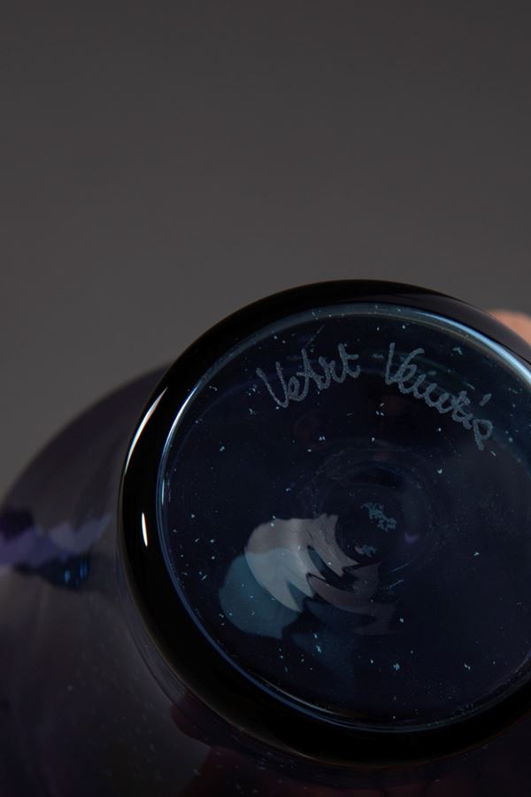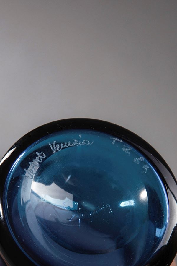 Vetro soffiato sfumato nero-azzurro.