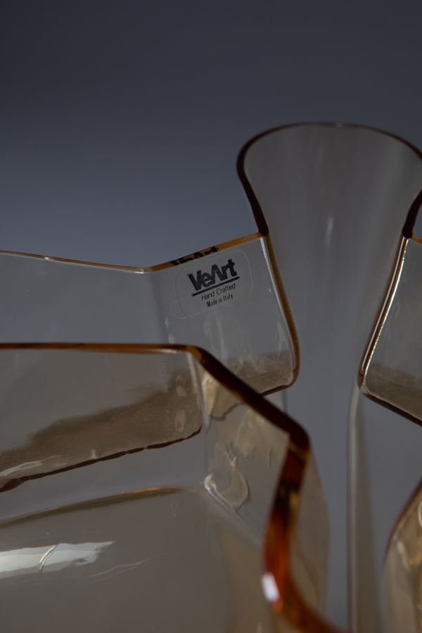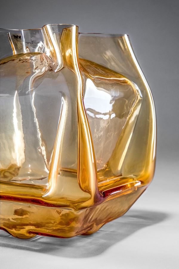 Vetro giallo ambra soffiato in stampo.