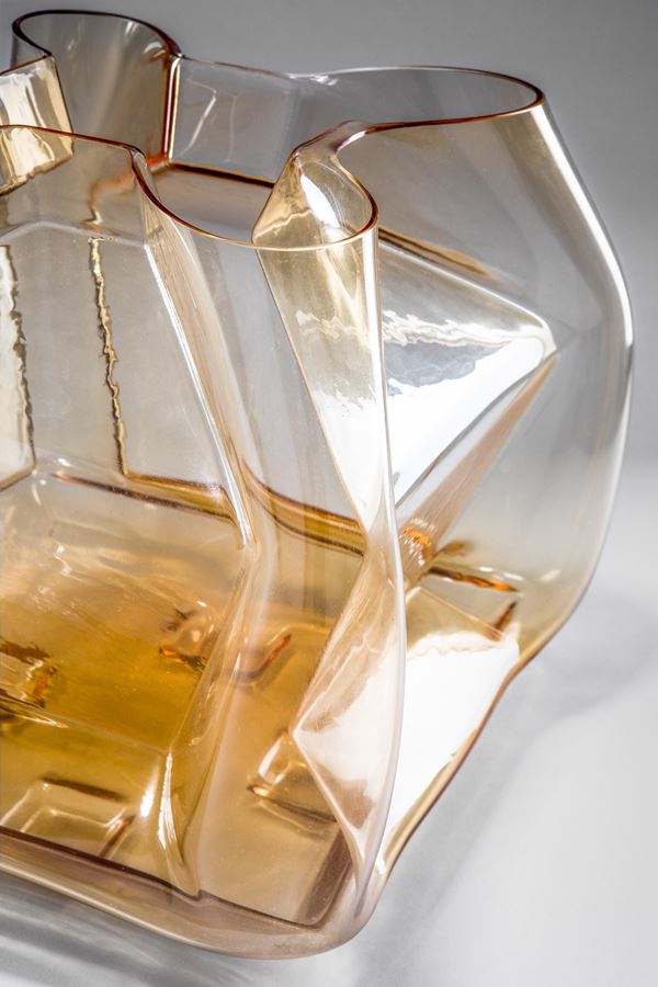Vetro giallo ambra soffiato in stampo.