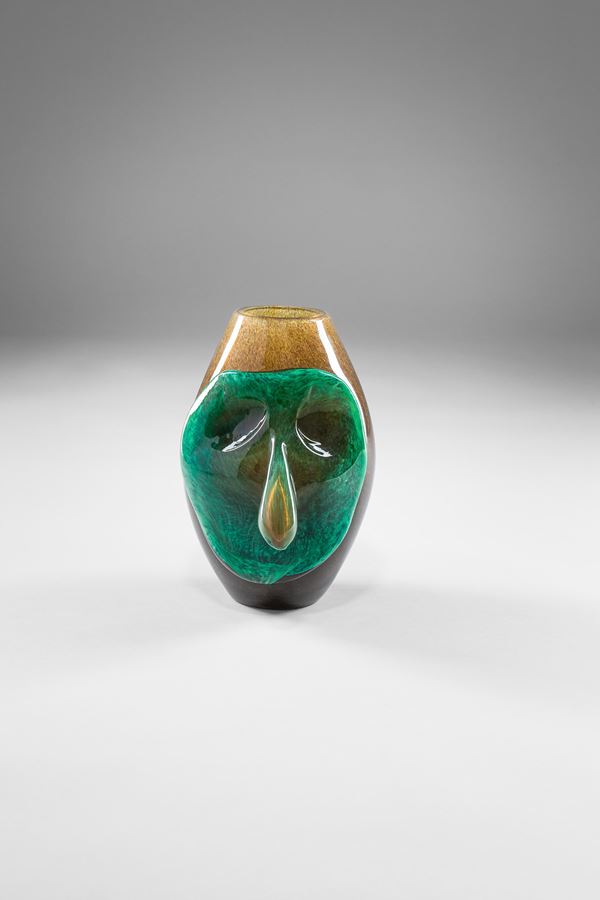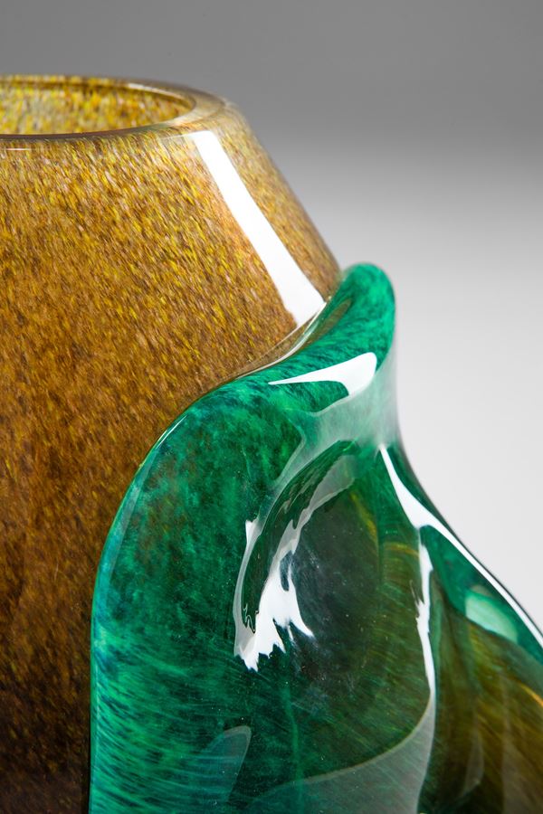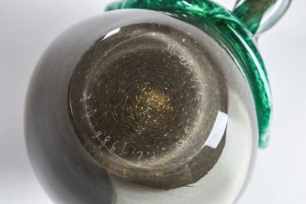 Vetro soffiato con applicazione di maschera in vetro soffiato verde.
