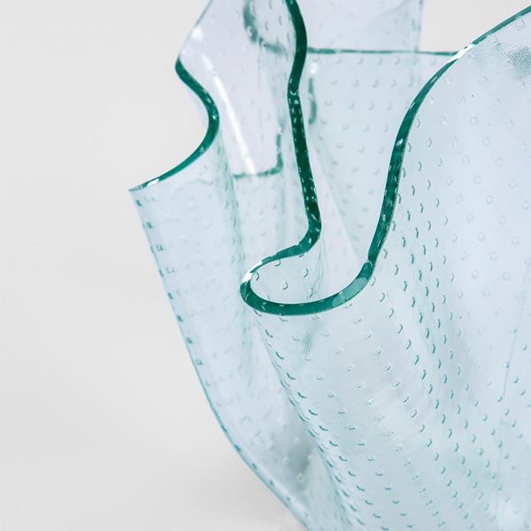 Foglio quadrato di vetro trasparente bulicante piegato a caldo.