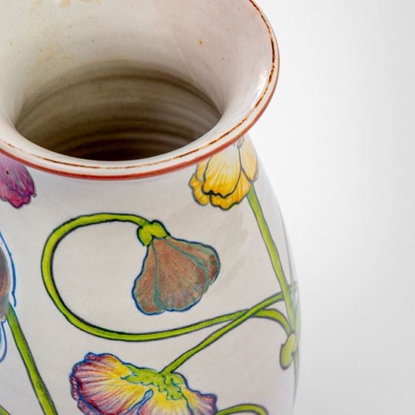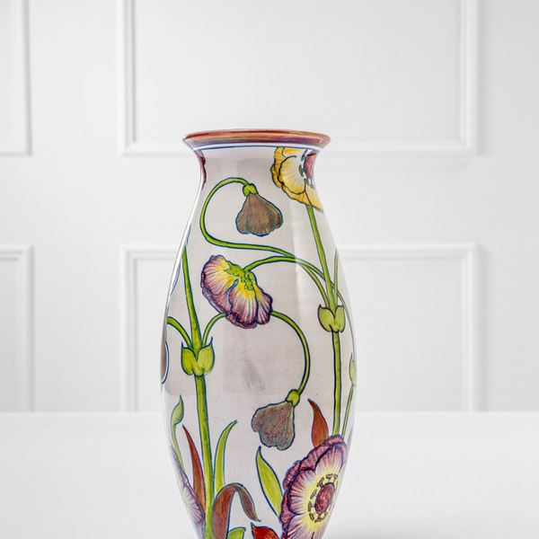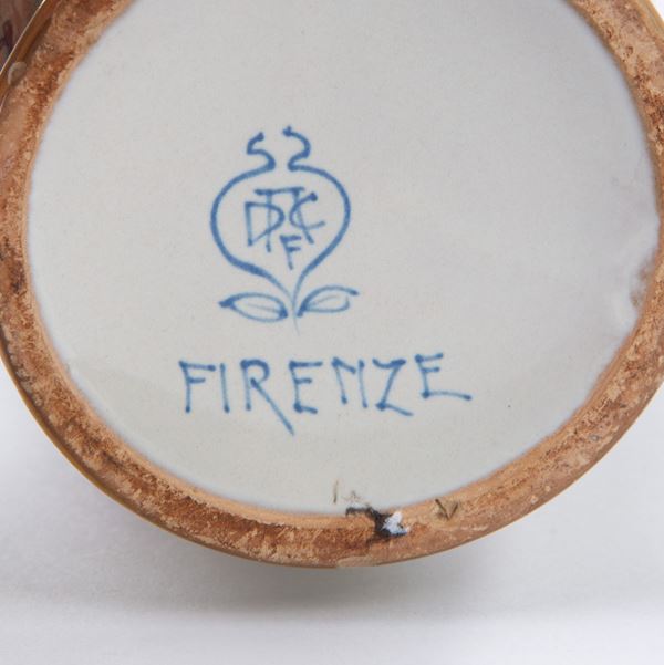Maiolica dipinta con motivi floreali policromi su fondo bianco.