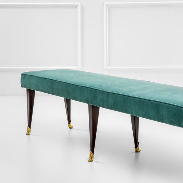 Legno tinto, ottone lucido, tessuto.