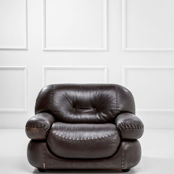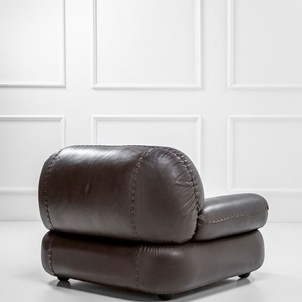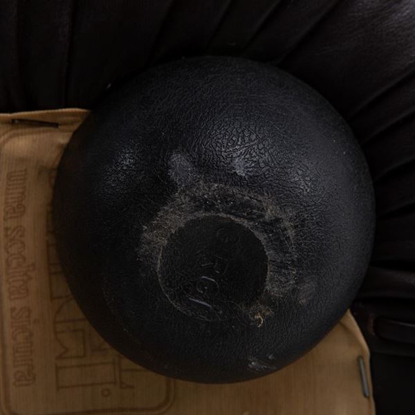 Marchio del produttore in rilievo sotto i piedi della poltrona.