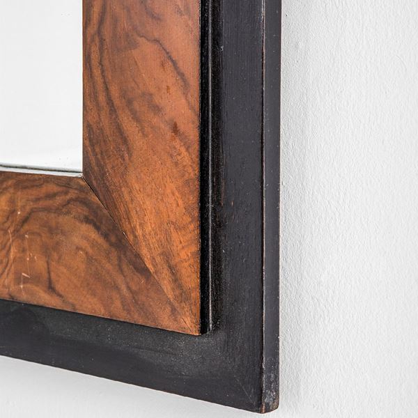 Legno tinto, legno impiallacciato in radica, vetro specchiato.