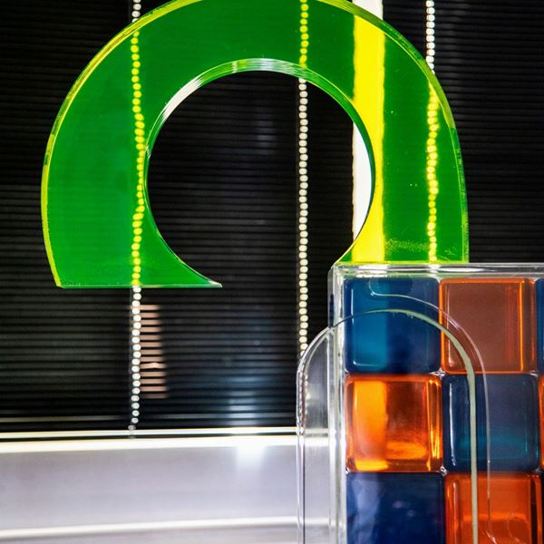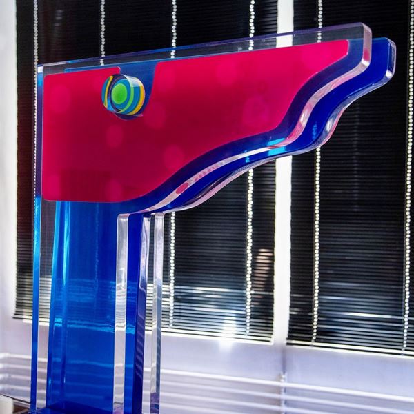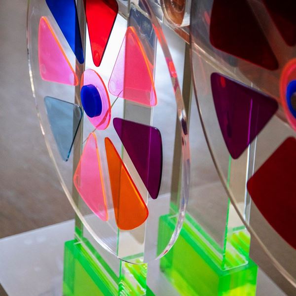 Scultura realizzata con elementi di metacrilato colorato e trasparente.