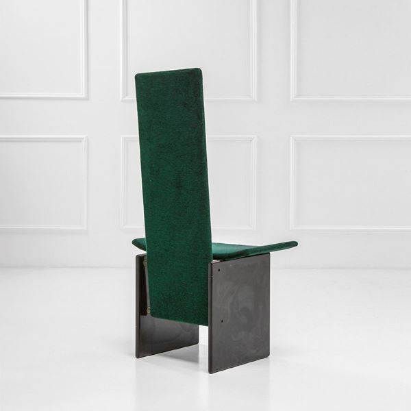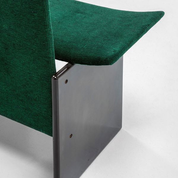 Legno laccato, imbottitura in gomma, tessuto.