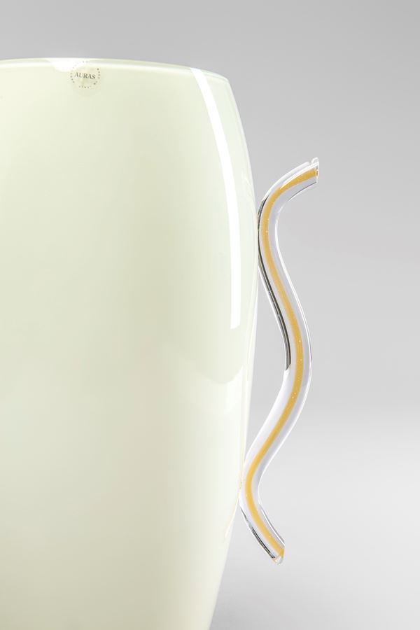 Vetro soffiato incamiciato con manici applicati a caldo.