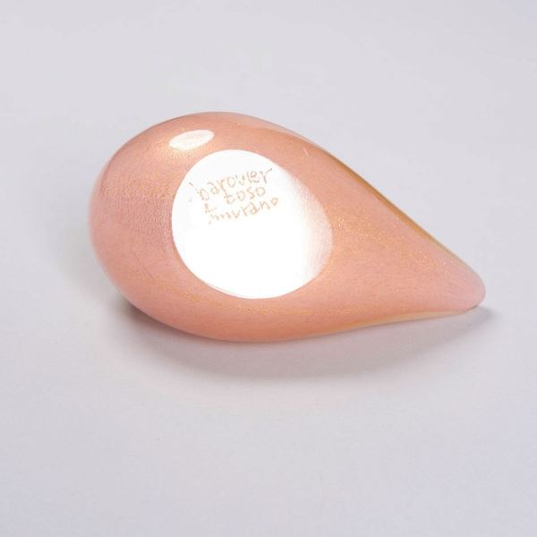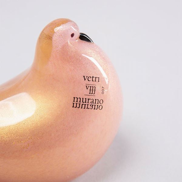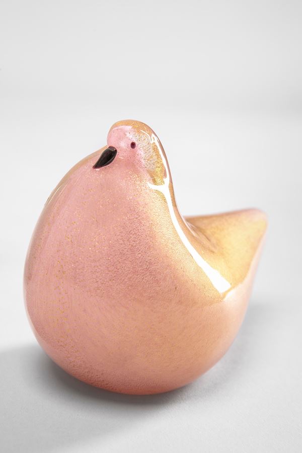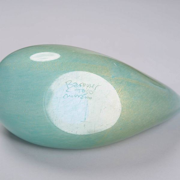 Vetro soffiato con inclusione di foglia d’oro e particolari in vetro nero.