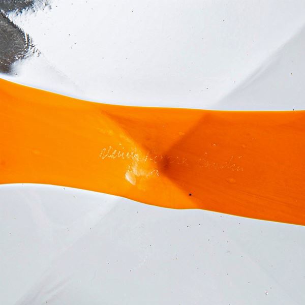 Vetro trasparente decorato con fascia verticale arancione.