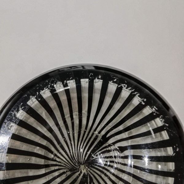 Vetro soffiato acciaio rigato di nero con una sciarpa di canne in cristallo raccolte e formate a caldo.