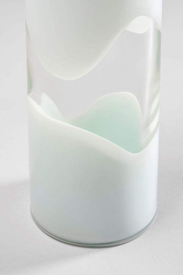 Vetro soffiato cristallo con due grandi fasce lattimo.