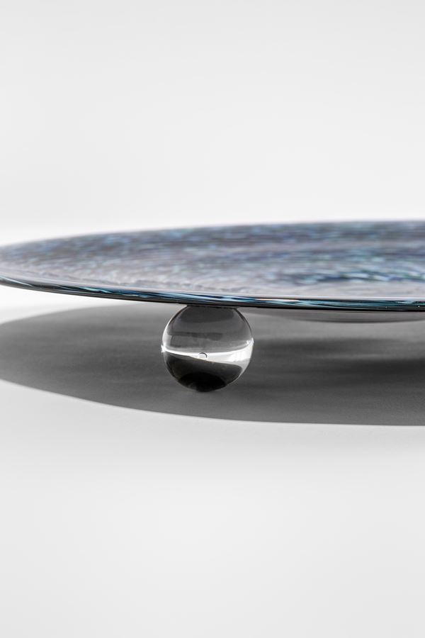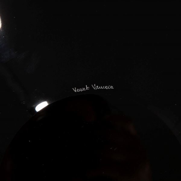 Vetro soffiato nero con canne policrome lavorate a spirale.