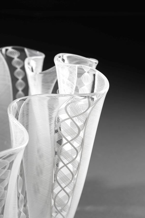 Vetro soffiato a canne di zanfirico lattimo.
