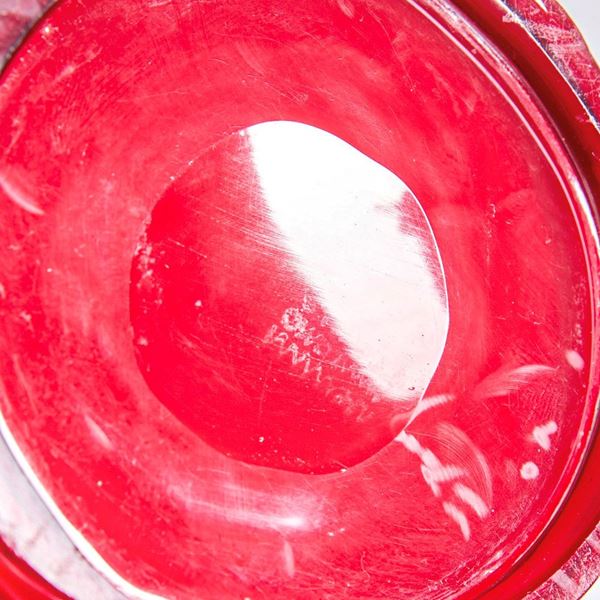 Vetro soffiato rosso incamiciato con più strati di colore.