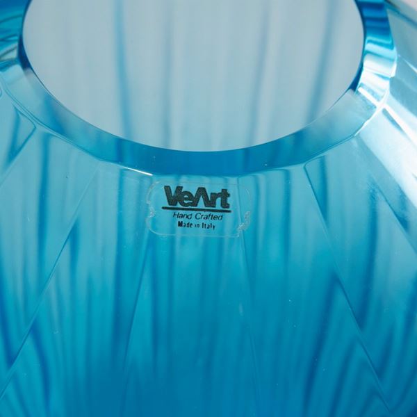 Vetro soffiato azzurro, satinato e molato.