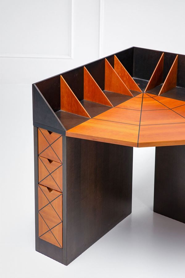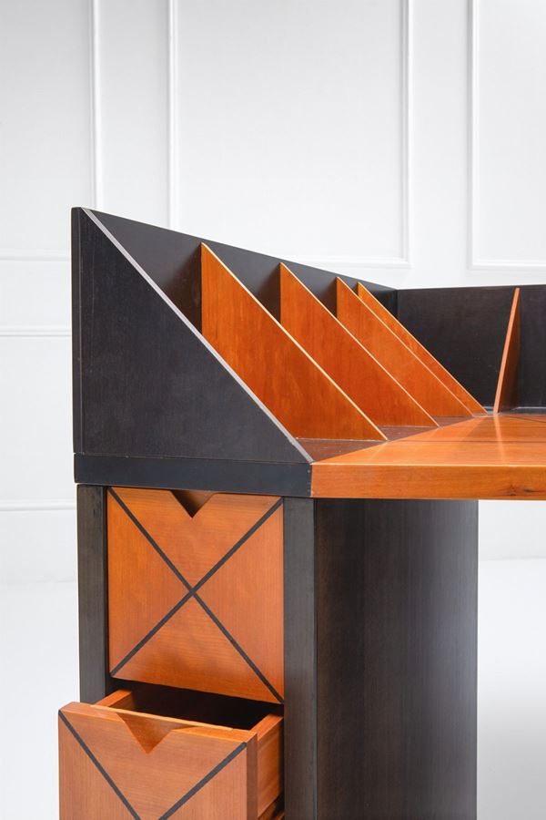 Legni di varie essenze con intarsi in legno ebanizzato.