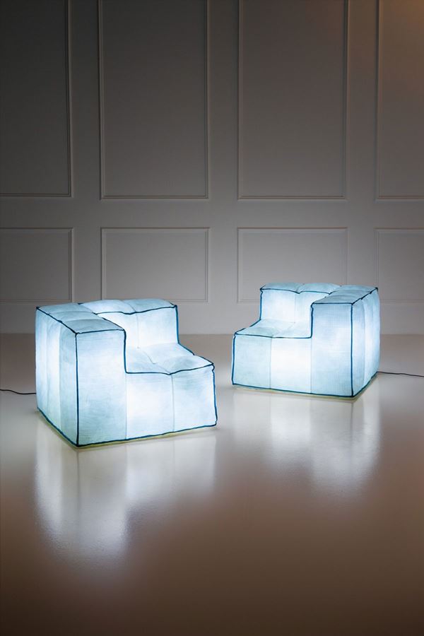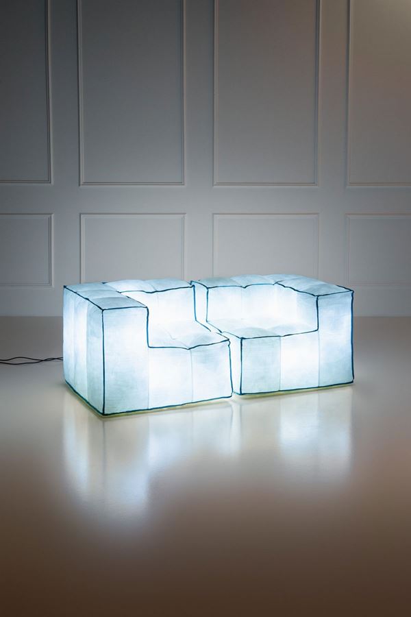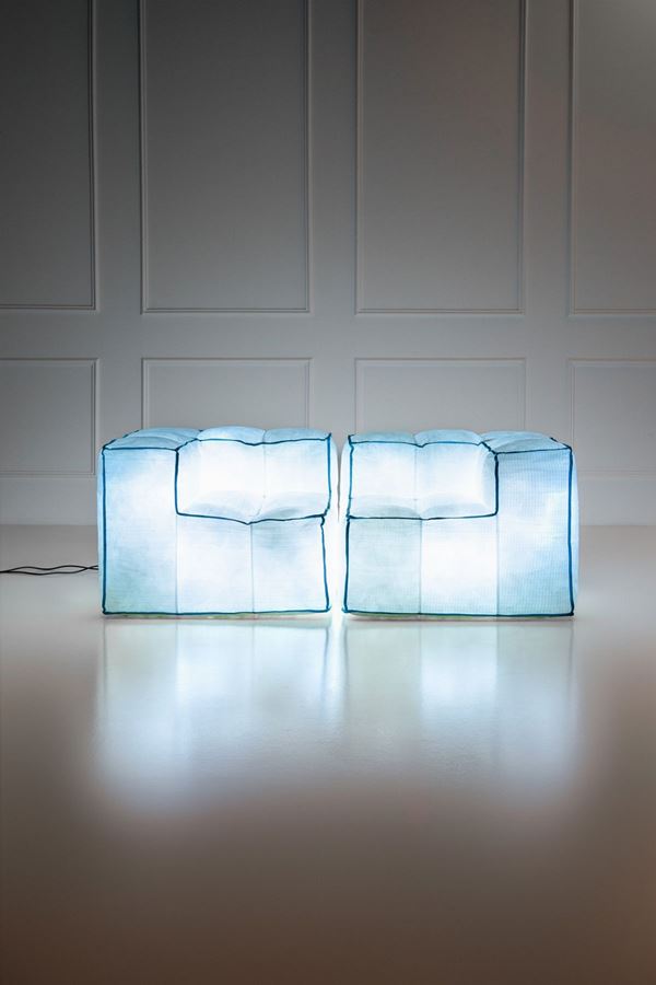 RIvestimento in polipropilene,imbottitura con cuscinetti termogonfiati, illuminazione interna a led.