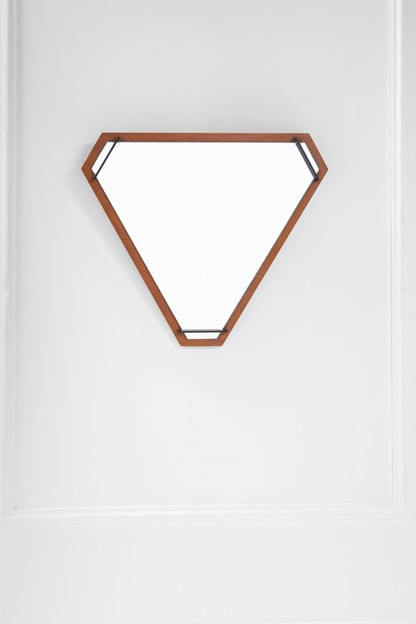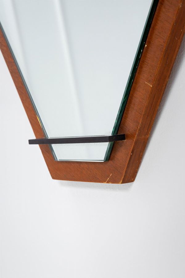 Legno impiallacciato, metallo verniciato, cristallo specchiato.