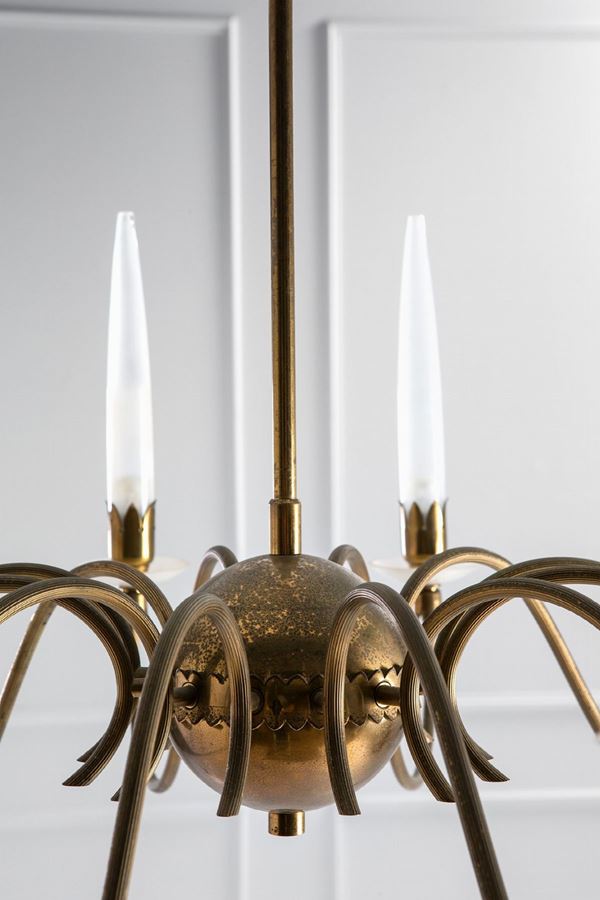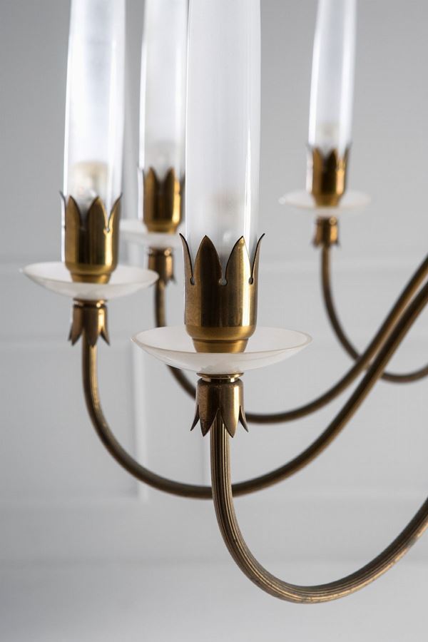 Ottone, vetro opalino sabbiato all'interno, vetro lucido opalino.