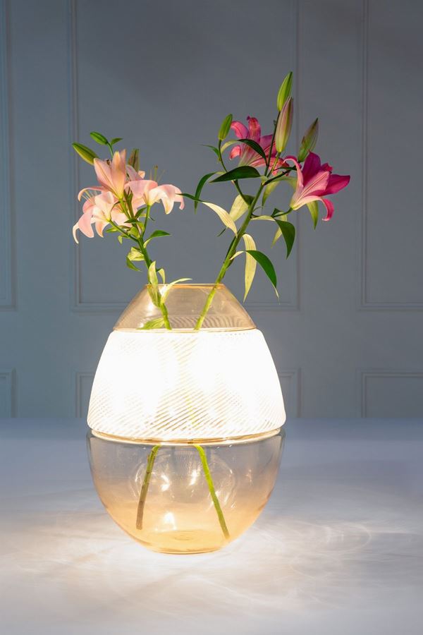 Cristallo con fascia filigrana bianca, calotta inferiore portafiori.