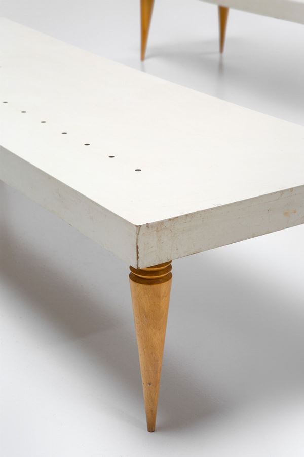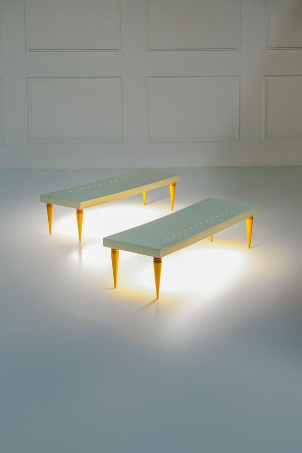 I tavolini furono commissionati dal negozio di Alassio per esporre oggetti di Venini e Fontana Arte.