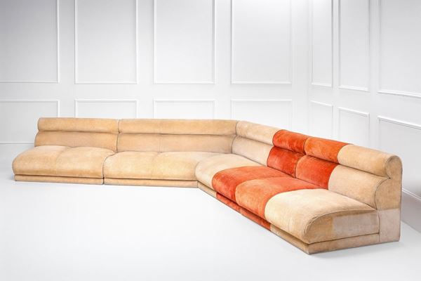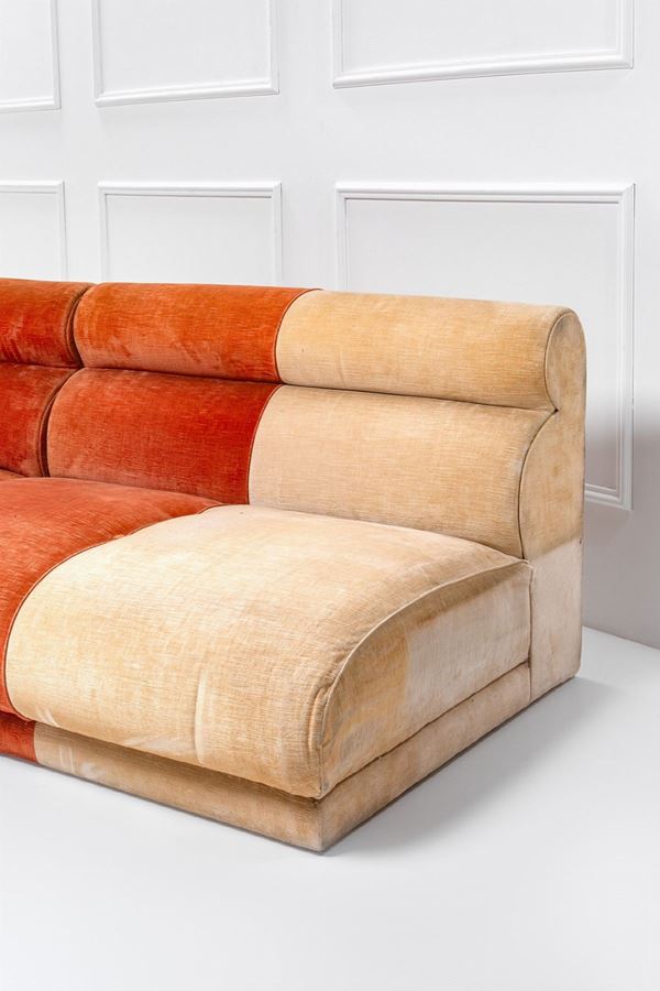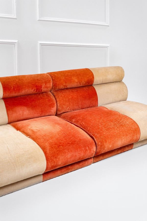 Sei moduli con struttura imbottita e interamente rivestita in tessuto.