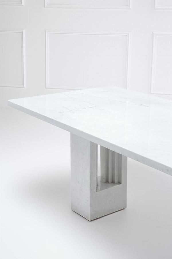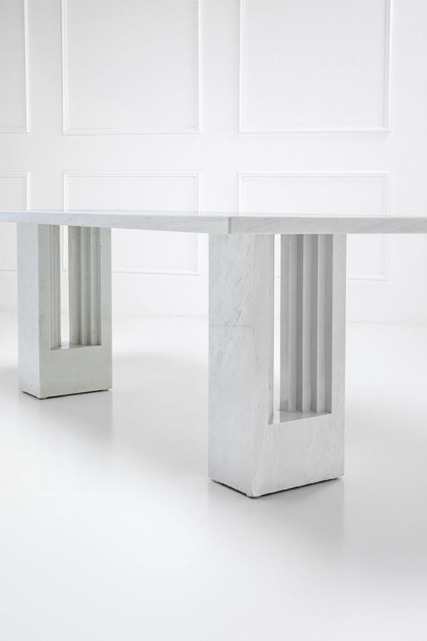 Blocchi di marmo scavati e fresati, piano in marmo di forte spessore.