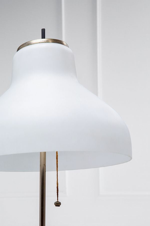 Ottone, metallo verniciato, vetro lattimo satinato.
