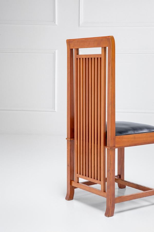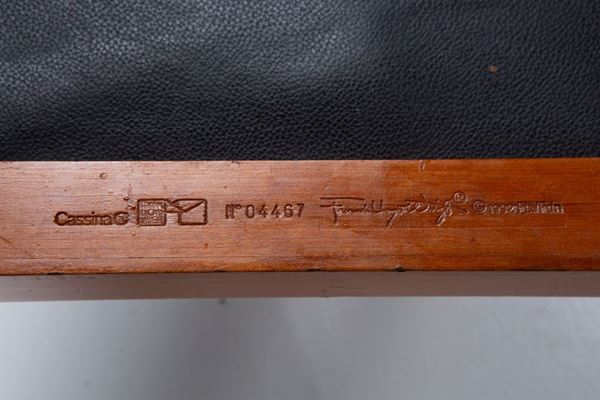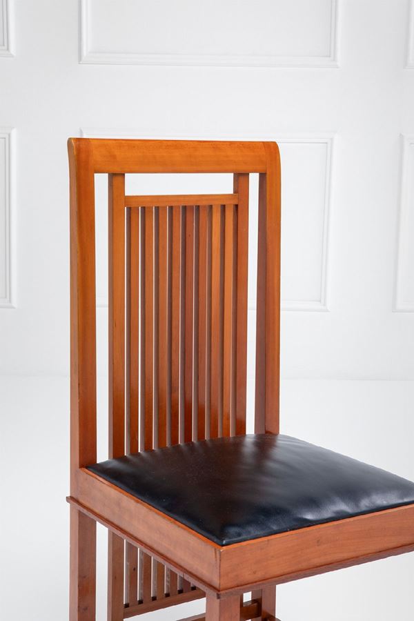 Marchio del produttore, numero di serie, nome del designer e data incisi sul legno: Cassina, n. 04467 e n. 04476 Frank Lloyd Wright 1992.